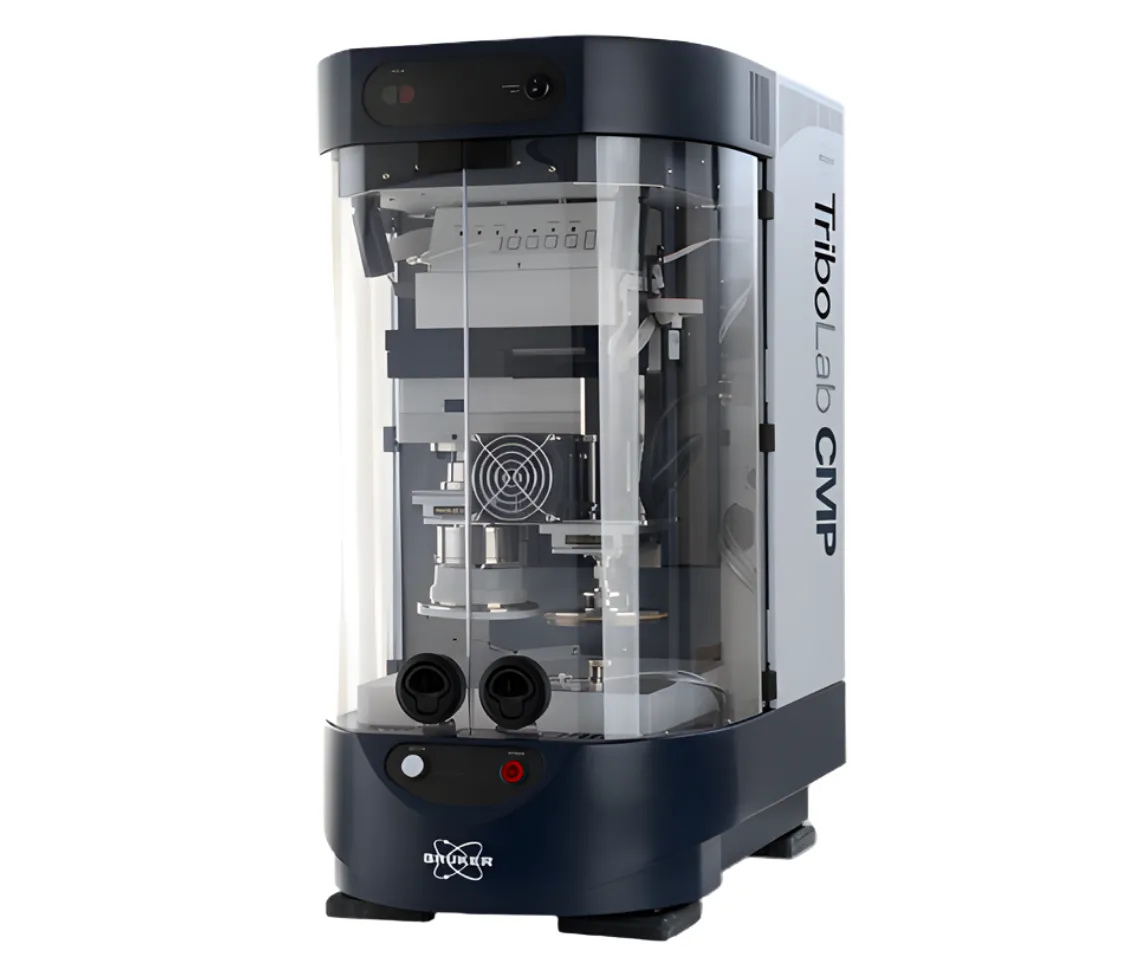 Leveraging over 20 years of CMP characterization expertise with its predecessor product (Bruker CP-4), TriboLab CMP brings a complete set of capabilities to the industry-leading TriboLab platform. The resulting accuracy and measurement repeatability enables the highly effective qualification, inspection, and ongoing functionality testing required throughout the CMP process. TriboLab CMP is the only process development tool on the market that can provide a broad range of polishing pressure (0.05-50 psi), speeds (1 to 500 rpm), friction, acoustic emissions, and surface temperature measurements for accurate and complete characterization of CMP processes and consumables.